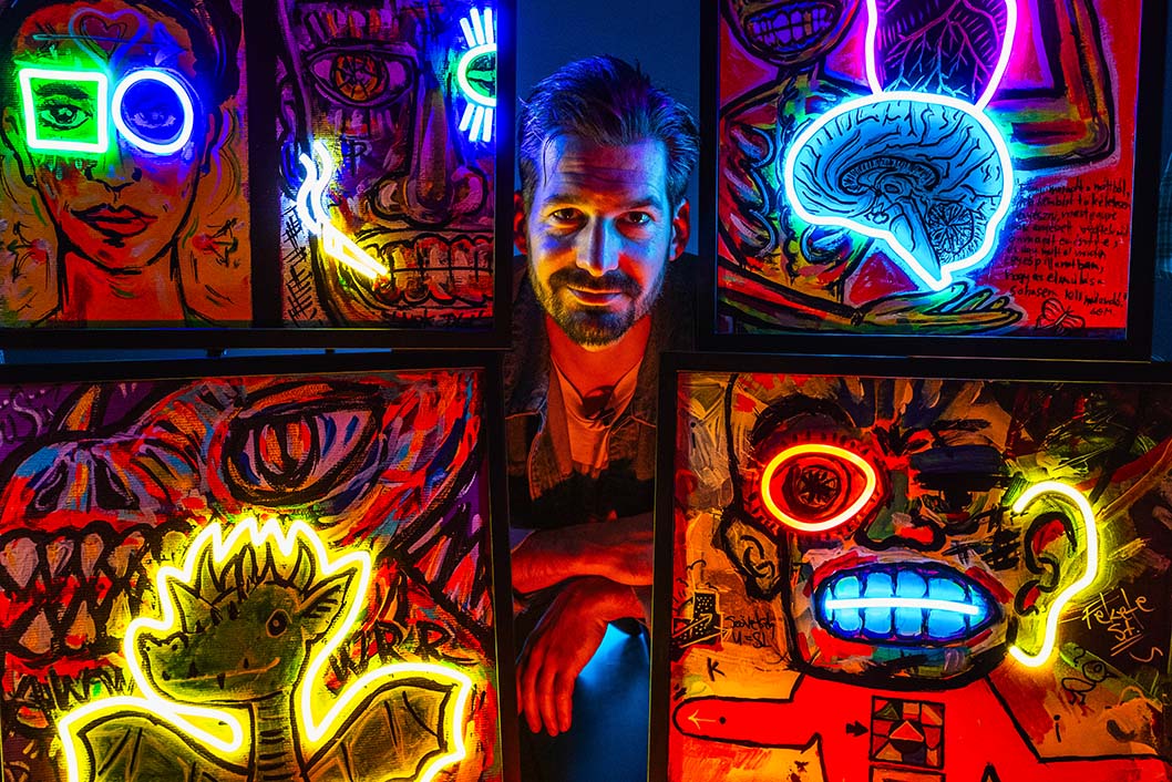 Each piece blends hand-painted art with custom LED–Neon technology — a limited-edition fusion of creativity and craft.